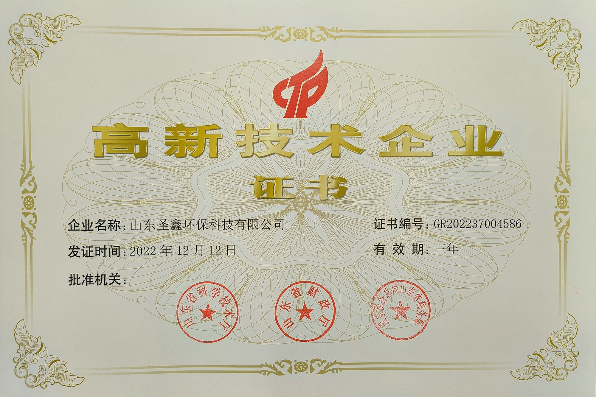 喜訊!熱烈祝賀圣鑫環(huán)保榮獲“高新技術(shù)企業(yè)認(rèn)定”