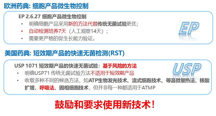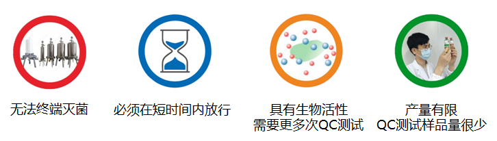 与传统药物相比前沿治疗药物(ATMP)在研发及生产过程中的产品质量控制面临诸多挑战,例如无法终端灭菌、传统药典中无菌检查方法检测周期长、具有生物活性需要多次QC测试、产量有限QC测试样品量少等。