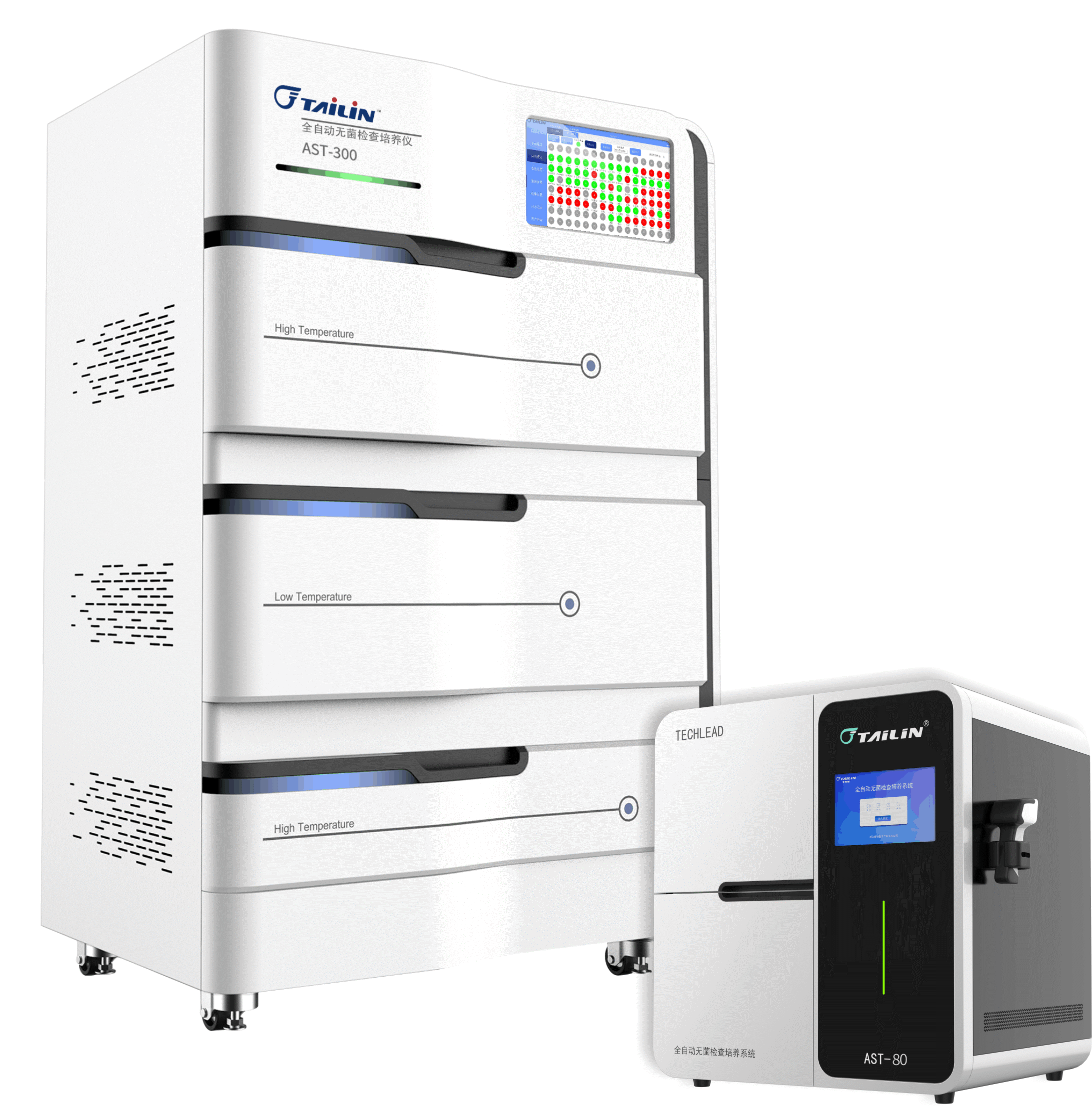 报告中指出,十三五国家重大科技专项成果全自动无菌培养系统AST-300和AST-80是专用于药品快速无菌检查的智能化仪器,由恒温培养箱体,自动化检测单元、培养容器、微生物生长信号感应器等组成。其原理是基于微生物呼吸作用产生的CO₂,引起培养容器上感应器颜色的改变,通过设备的视觉相机连续扫码感应器图像及对应二维码,由计算机系统进行视觉分析并转换为生长信号,根据变化趋势分析及专用的算法来判断无菌检查结果。